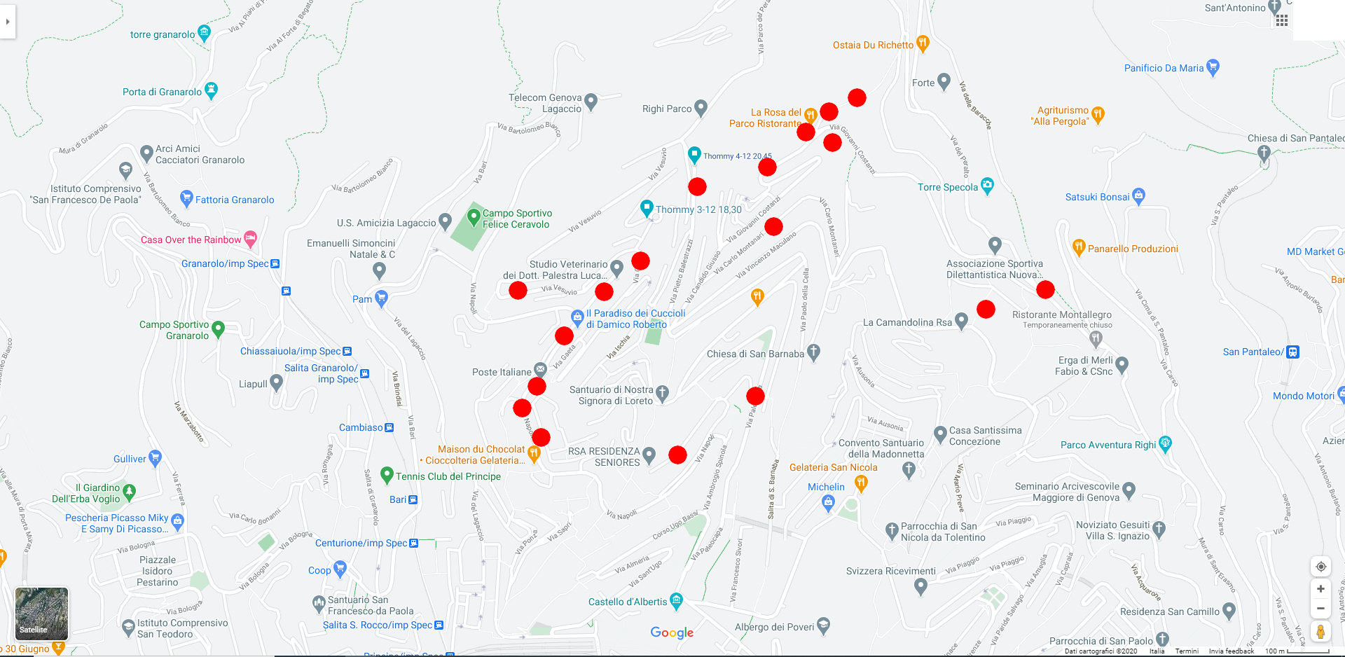 Le vie di Genova interessate da avvistamenti nelle ultime 24 ore sono: