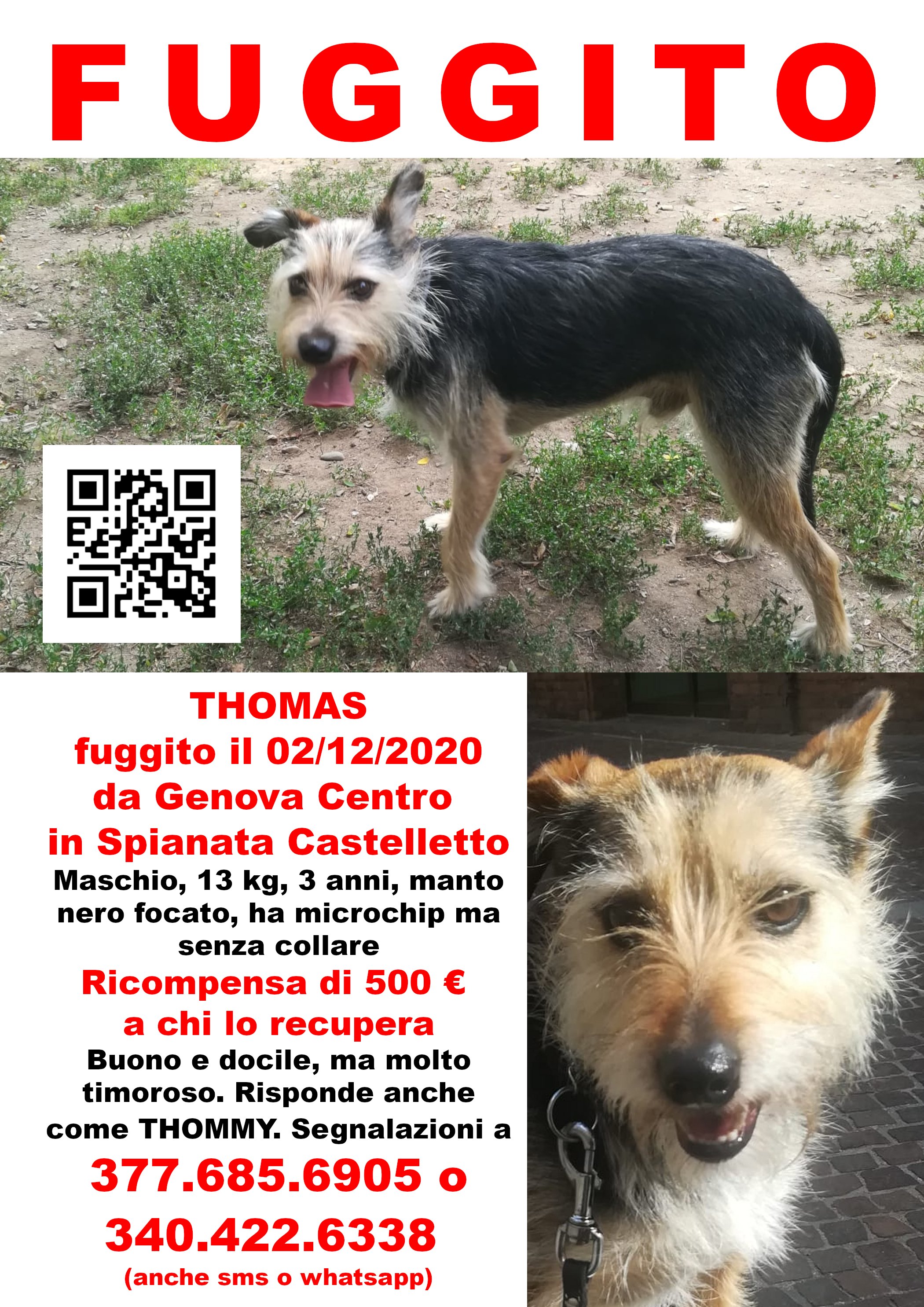E' scappato THOMAS appena arrivato in adozione a Genova.